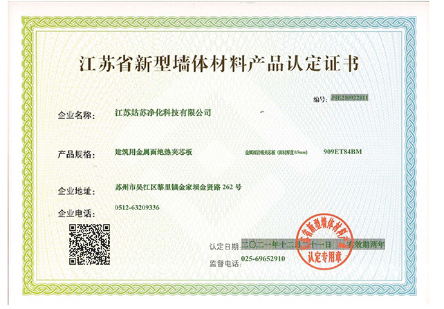 江蘇省新型墻體材料產品認定證書